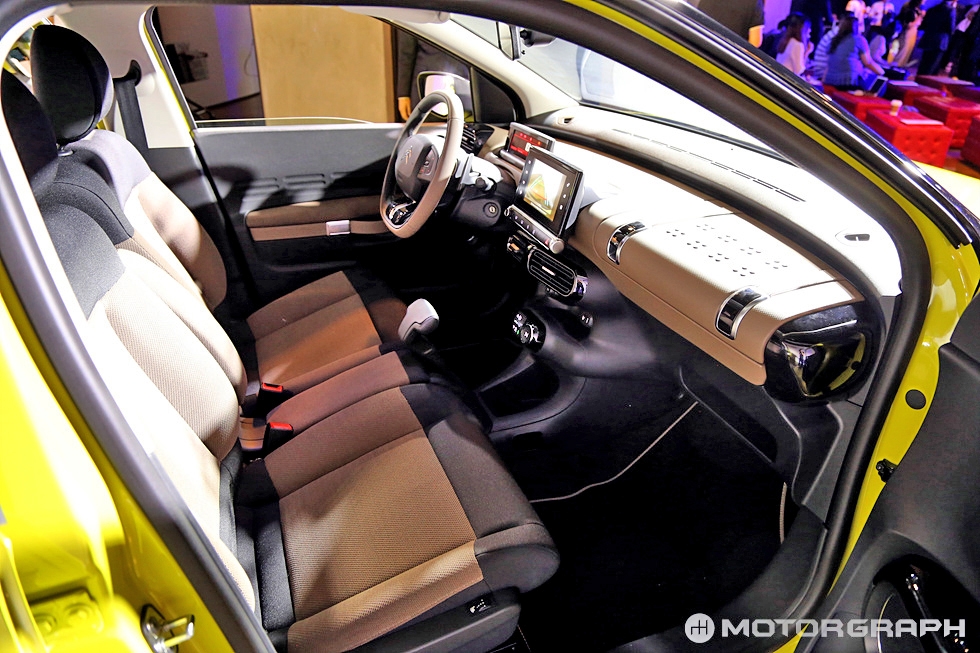 C4 칵투스의 실내는 개성 넘치는 외관만큼 독특하게 구성된 것이 특징이다. 소파 스타일 시트가 적용됐고, 여행용 트렁크에서 영감을 받은 가죽 스트랩 디자인의 도어 핸들, 상자처럼 생긴 글로브 박스 등 젊은 감각의 아이디어들이 곳곳에 탑재됐다. 여기에 세계 최초로 조수석 루프 에어백 기술이 도입됐고, 버튼으로 누르는 기어 시스템이 더해졌다.