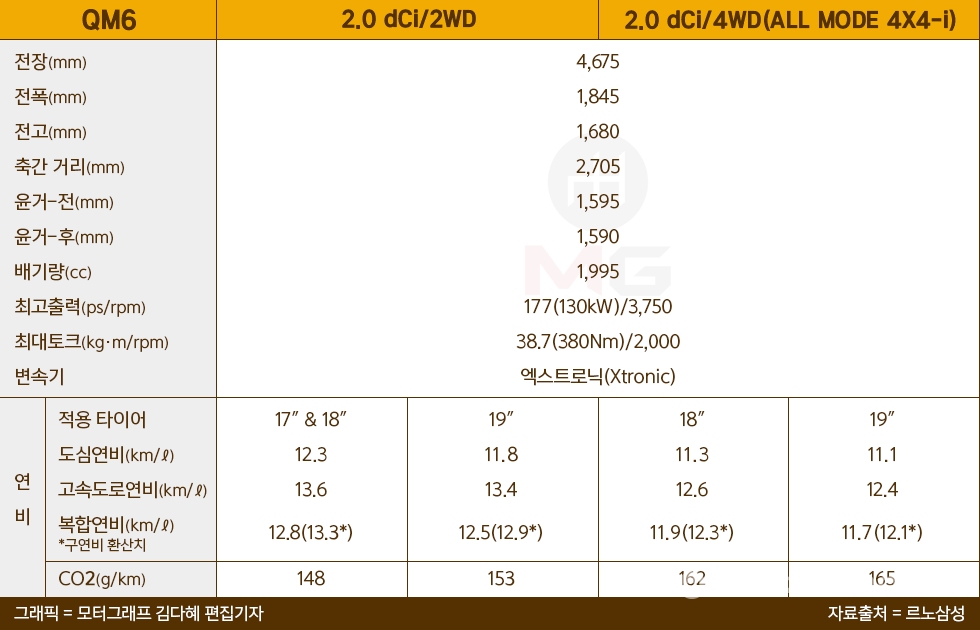 이날 QM6 테크데이에서는 신차의 구체적인 제원과 가격 등이 공개됐다(아래 표 참고).