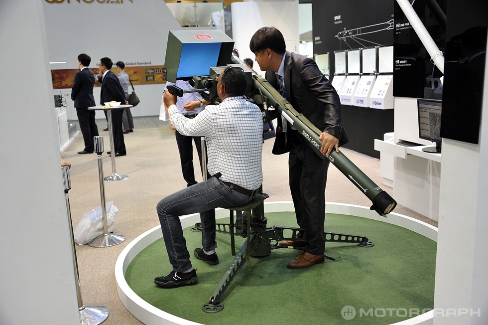 특히, 국내 업체로는 기아차가 새로운 소형전술차량을 전시했고, 한화는 K9 자주포와 차세대 다련장 무기인 천무 등을 공개했다. 또, 국산 기동헬기 수리온도 전시돼 관람객들의 관심을 끌었다.