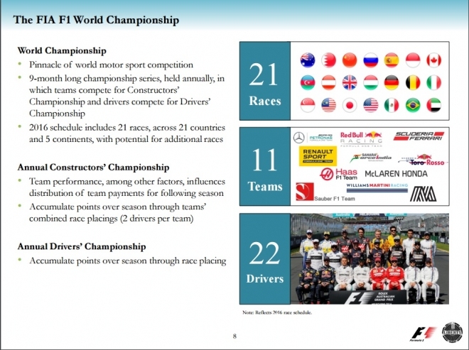 40여년간 F1을 이끌어온 포뮬러원매니지먼트(FOM)의 버니 에클레스톤 회장은 F1 사업부 CEO직을 맡는다. 다만, 21세기폭스 부회장을 역임한 체이스 캐리가 회장(이사회 의장)으로 영입됨에 따라 85세 고령인 버니 에클레스톤의 영향력은 한층 줄어들 전망이다.