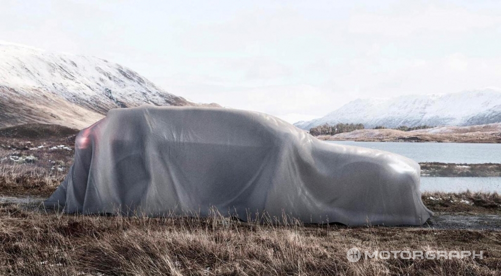 강 옆의 들판에 천으로 가려진 차 한대가 서 있다. 전면에 '망치'모양 주간주행등이 켜진 모습을 확인할 수 있으며, 후면은 볼보 특유의 테일램프가 적용된 모습을 발견할 수 있다. 돌출된 휠 아치의 모양도 인상적이다.