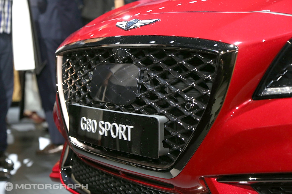 제네시스 G80 스포츠는 내외관 디자인을 보다 역동적으로 꾸미고, 터보 엔진을 탑재해 주행 성능을 높인 모델이다. 외관은 스포티한 디자인의 라디에이터 그릴과 전용 범퍼, 쿼드 머플러, 휠 등이 적용됐다.