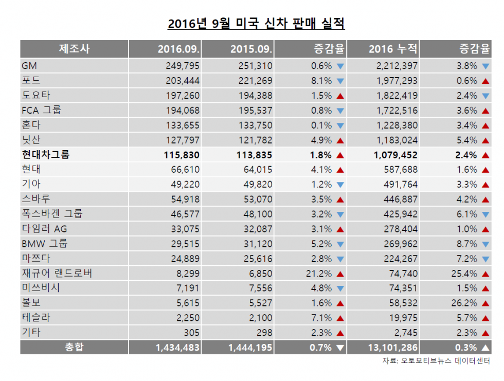 미국 자동차 시장은 8월에 이어 9월에도 마이너스 성장세를 보였다. 특히 5일 노동절(Labor Day) 이벤트와 각 업체별 인센티브 확대 등에도 불구하고, 법인판매(Fleet Sales) 부진이 발목을 잡았다.