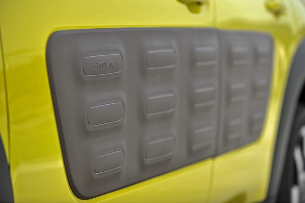 ‘에어범프(Airbump)’로 불리는 이 부품은 앞문과 뒷문에 마치 반창고처럼 달라붙었고, 이와 비슷한 디자인 요소가 헤드램프와 테일램프 주변에도 붙었다. 에어범프는 플라스틱이 아닌 ‘열가소성 폴리우레탄’으로 제작됐다. 그래서 만지면 말랑말랑하다. 그리고 마치 캡슐처럼 속은 공기로 차있다. 그래서 C4 칵투스는 문콕에서 자유롭다.