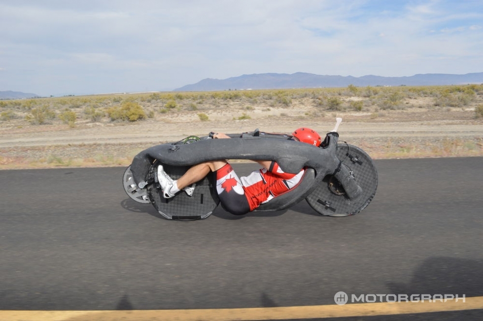 인간의 힘으로만 낼 수 있는 최고속도는 시속 몇 km일까. 미국의 한 업체가 ‘총알’ 모양의 자전거로 자동차만큼 빠른 속도를 기록해 화제다. 구동은 순전히 인력(人力)으로만 이뤄졌으며, 전자장비의 도움은 받지 않았다.