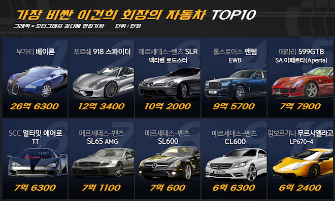 # 이건희 회장의 ‘억’소리나는 애마 TOP10