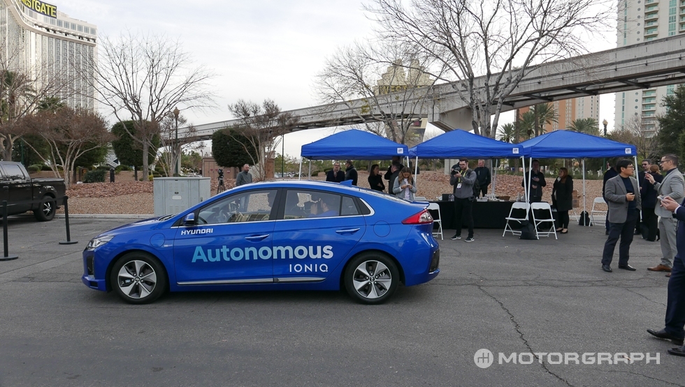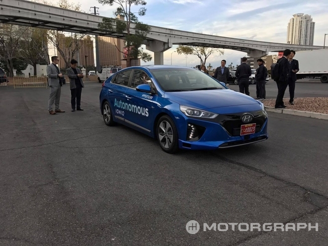 현대차 아이오닉의 자율주행부스는 라스베이거스 웨스트게이트 호텔에 조촐하게 마련됐다. 세계 기자들 중 15개 팀만 불러서 자율주행 체험을 시켜주려는, 홍보보다는 인증에 의미가 있는 행사였다. 하지만 계획했던 인원보다 훨씬 많은 기자들이 관심을 갖고 몰려들면서 전체 체험 팀은 30개 이상으로 늘어났다. 관계자들은 뜻밖의 인기에 즐거워하면서도 하루 종일 식사도 하지 못한 채 수십명 기자들에 둘러싸여 뜨거운 취재 열기에 시달려야 했다.