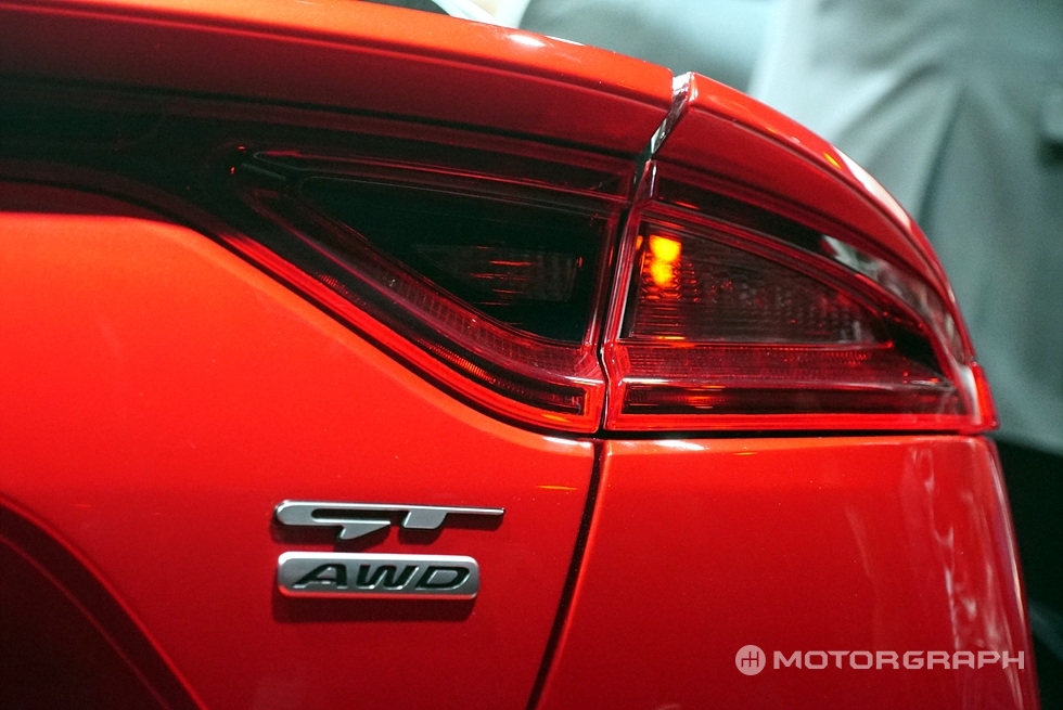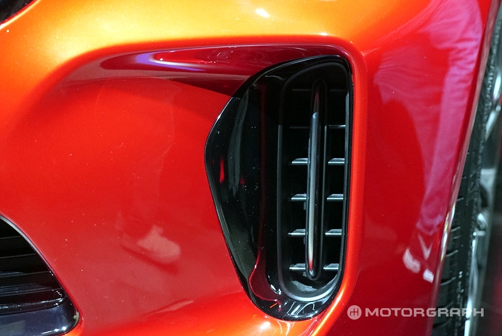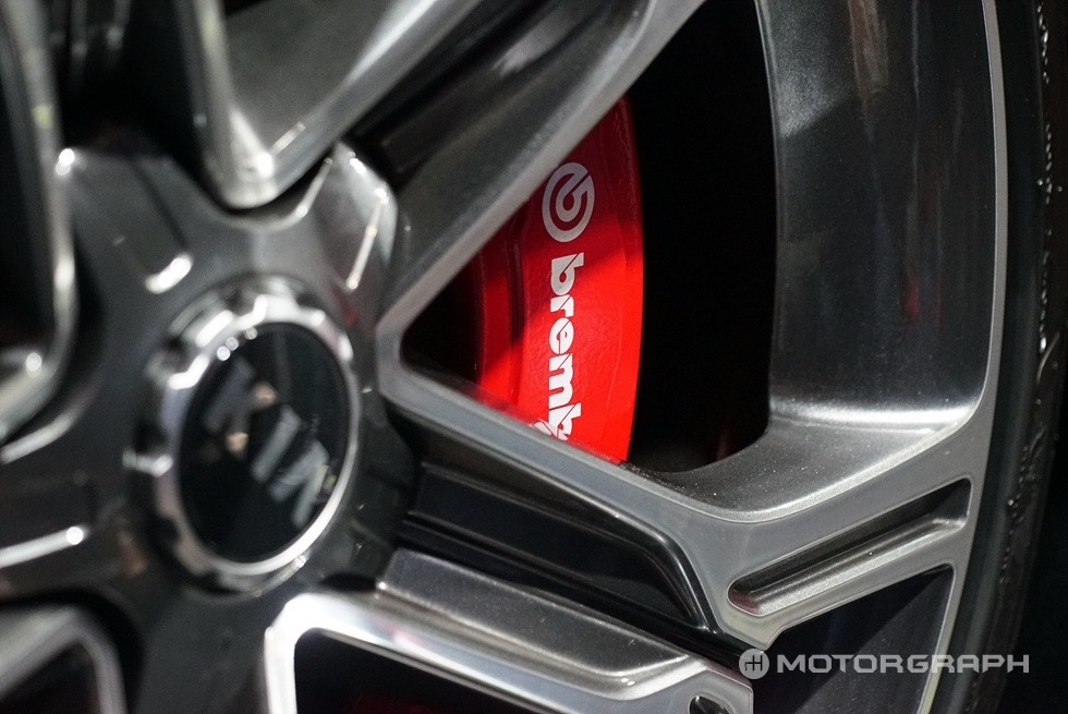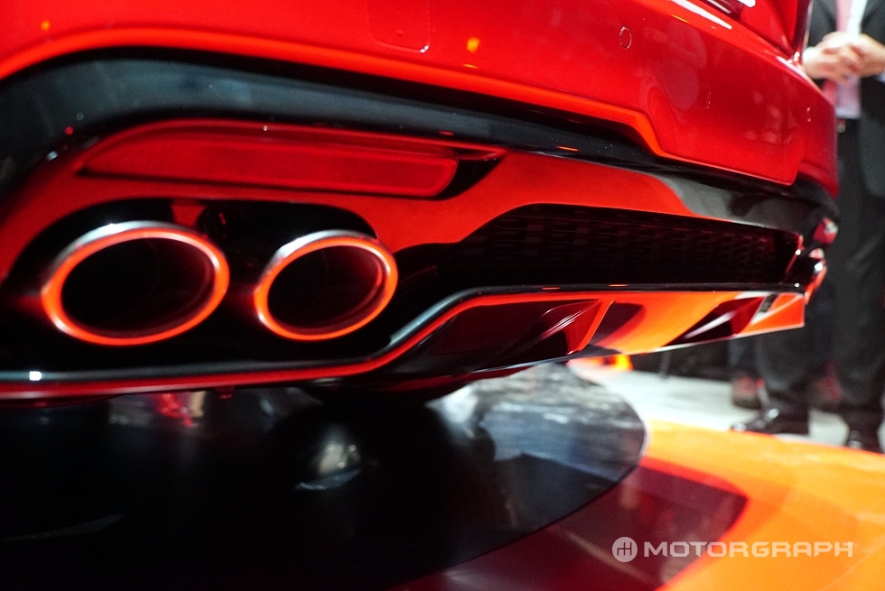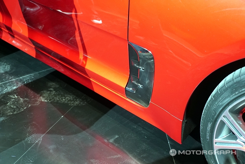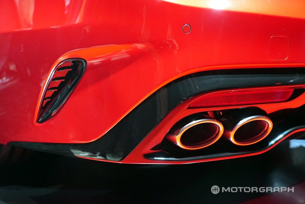 리어 디퓨저는 고성능 모델 느낌을 살려 공격적인 모습이며, 타원형 듀얼 트윈 머플러가 장착됐다. 다만, 이날 행사에서 공개된 차는 3.3리터 V6 가솔린 트윈터보 엔진이 탑재된 모델이다.