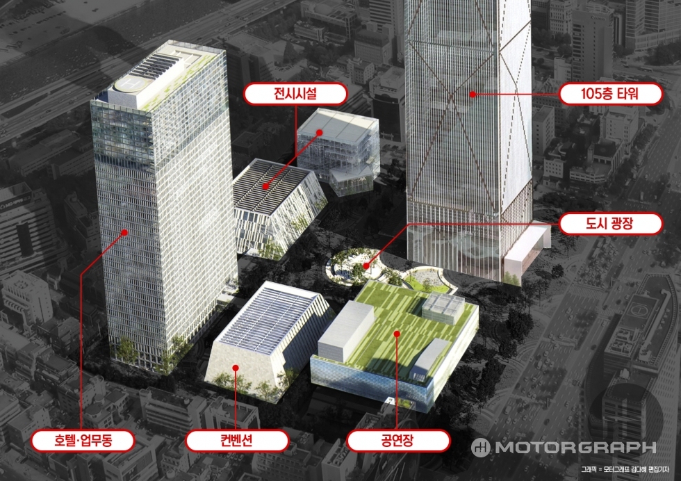 층수는 105층으로 현대차의 당초 계획과 동일하며, 7만9342㎡ 부지와 지상 및 지하를 합친 총 연면적 92만8887㎡ 규모도 변함없다. 공연장, 전시시설, 컨벤션, 호텔 및 업무실 등 6개의 건물도 기존 계획대로 지어질 예정이다.