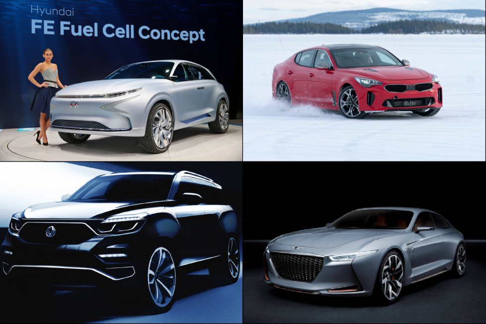 제네시스는 독립 부스를 마련하고, G70 콘셉트카를 선보일 예정이다. 지난해 뉴욕모터쇼에 출품된 4도어 스포츠세단 '뉴욕 콘셉트'를 기반으로, 양산형 모델에 조금 더 가까운 외관이 공개될 전망이다. 기아 스팅어와 더불어 연내 양산차 출시가 예고됐다.