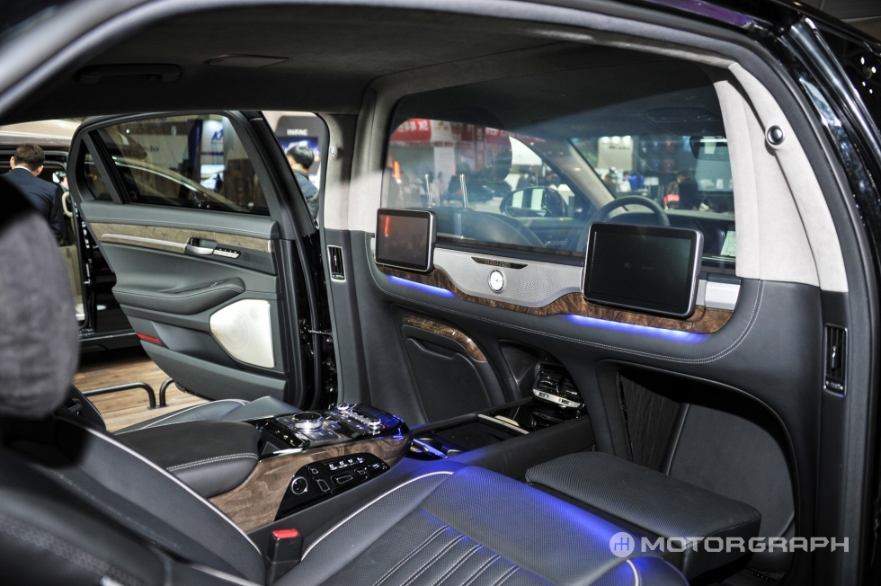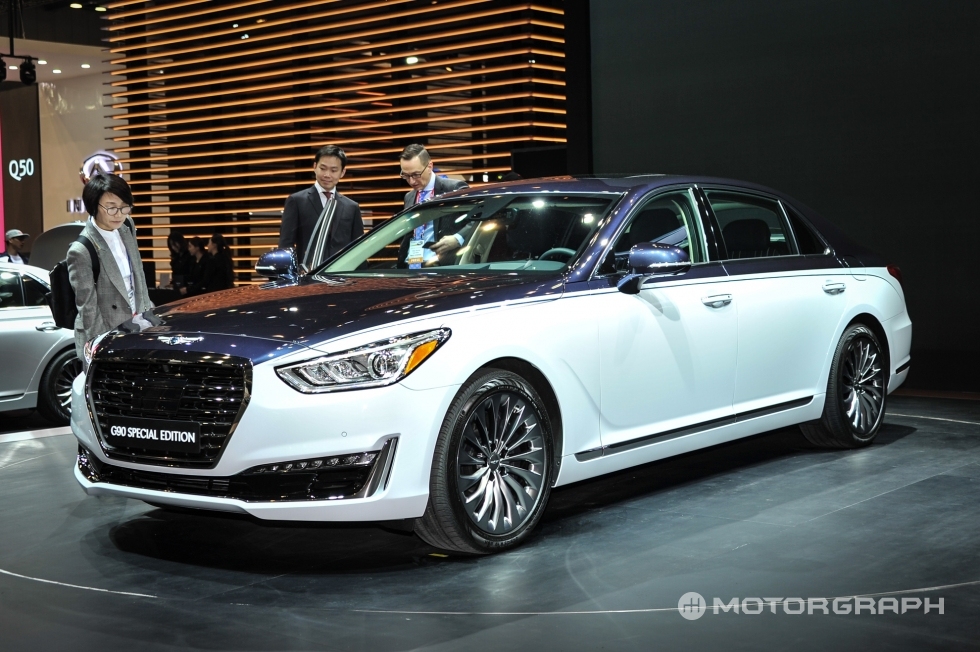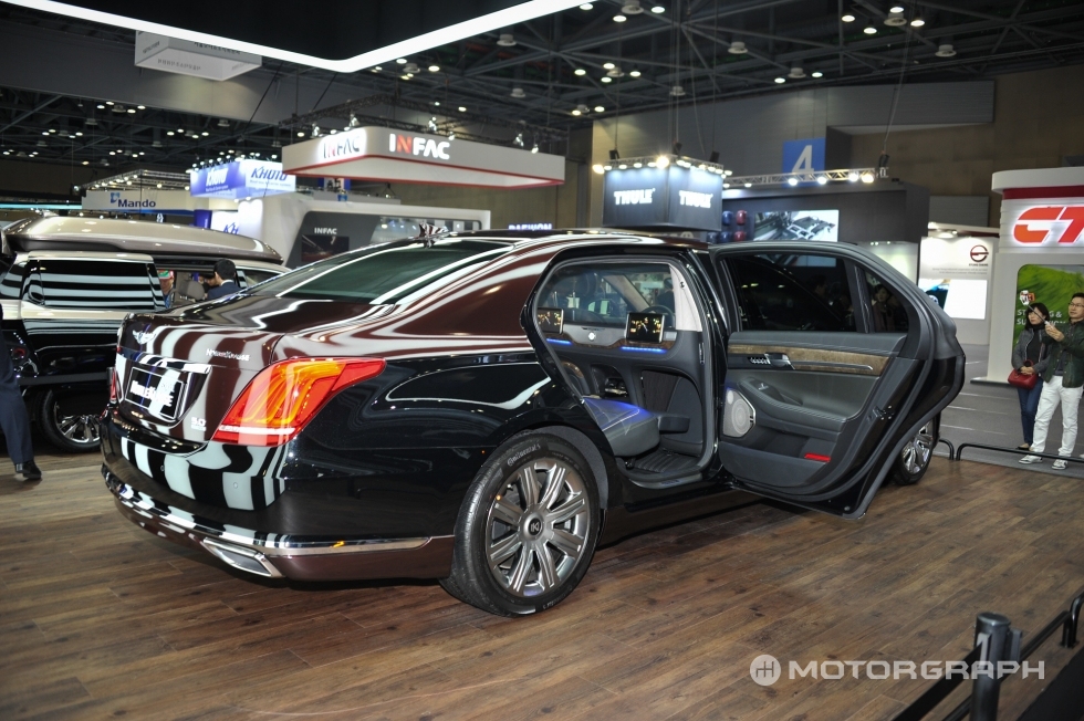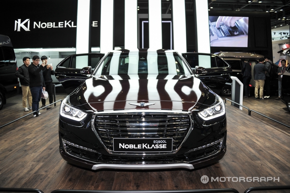 이번 2017 서울모터쇼에서 두대의 야심찬 EQ900이 전시됐다. 벤틀리에서 제네시스 디자인 책임자로 자리를 옮긴 루크 동커볼케가 “시대를 뛰어넘는 아름다움과 디자인을 추구했다”고 설명한 ‘G90 스페셜 에디션’과 한국의 ‘브라부스’라 불릴만한 노블클라쎄의 EQ900L이 그 주인공이다.