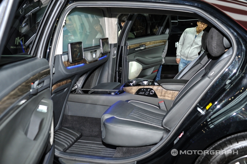 하이리무진을 생산하던 노하우를 살려 카니발을 극단적인 의전차로 꾸민 4인승 ‘L4’를 처음 선보였고, 고급스러움과 실용성을 모두 갖춘 9인승 ‘L9’에 이어, 현대차 쏠라티의 넓은 공간을 자유롭게 활용한 신차까지 내놓았다. 점차 영역을 넓힌 노블클라쎄는 이번 서울모터쇼를 통해 제네시스 EQ900L을 기반으로 제작한 자신들의 네번째 모델을 공개했다.