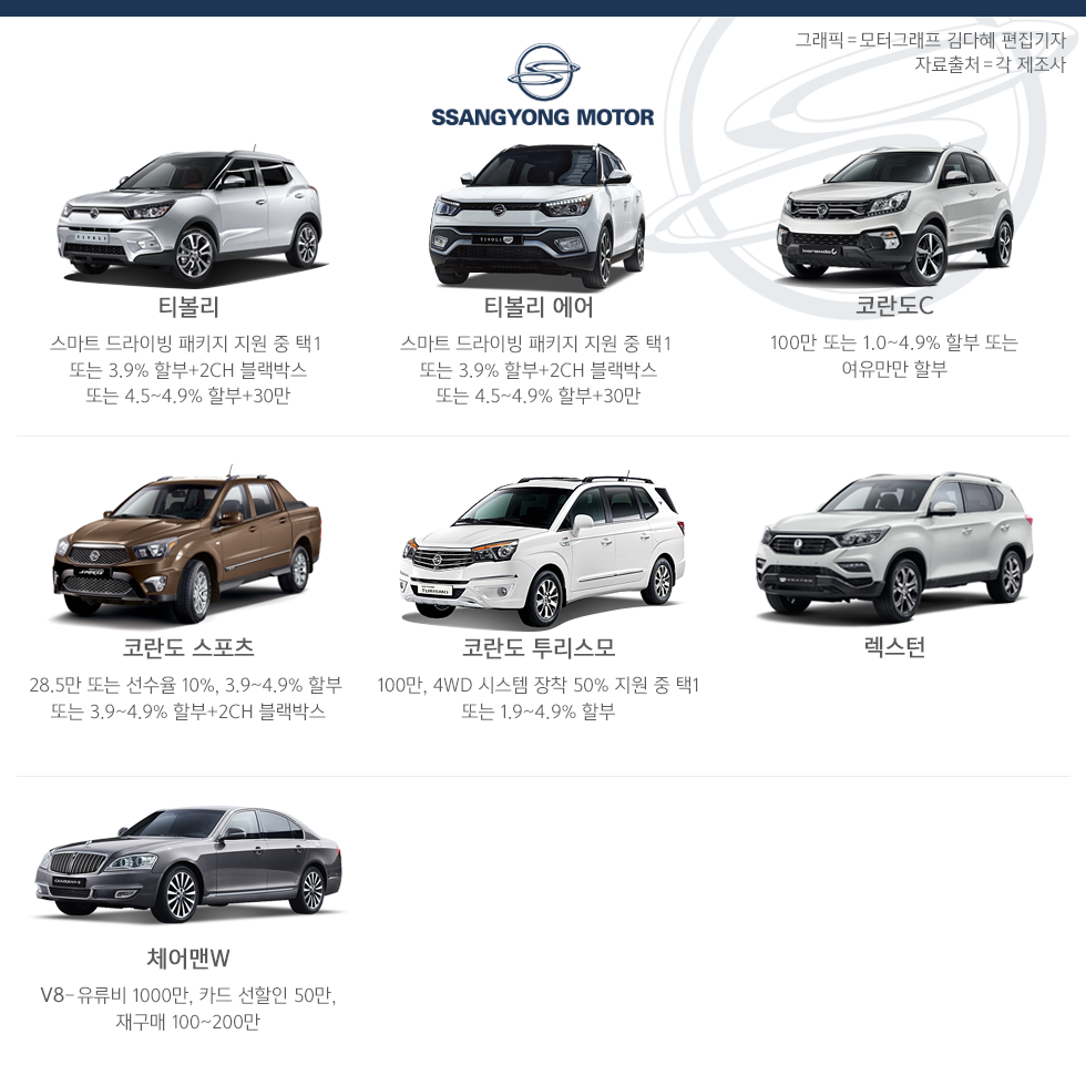 이와 함께 주력인 티볼리에 대한 할부 이자도 최저 4.9%에서 4.5%로 소폭 조정했다.