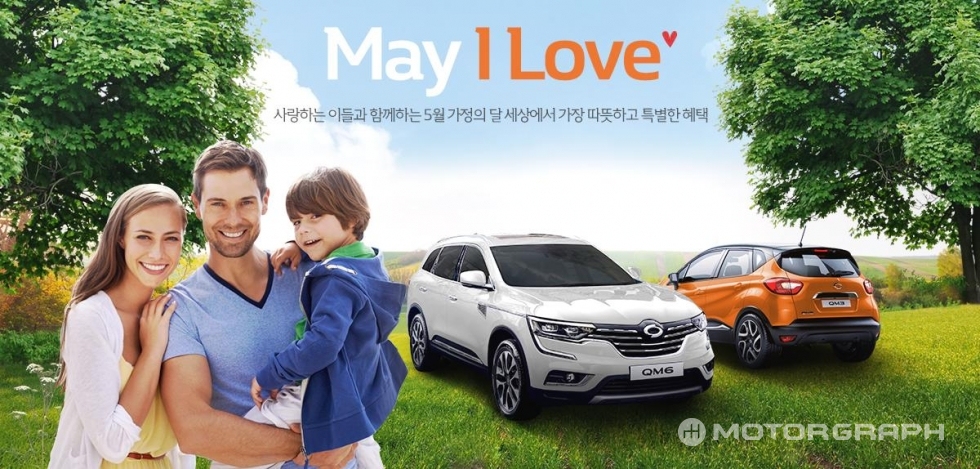 르노삼성차는 5월 가정의 달을 맞아 QM3, QM6와 함께하는 ‘May I Love’ 이벤트를 진행한다고 4일 밝혔다. 르노삼성차는 이달 2일부터 28일까지 이벤트에 참여한 고객 중 405명을 추첨해 호텔 숙박권, 백화점 상품권 등 푸짐한 선물을 제공할 계획이다.