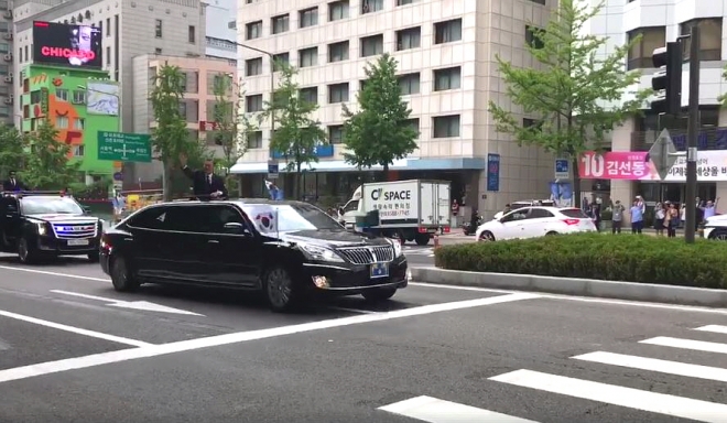 공식 일정 첫 번째 날인 10일, 문 대통령은 현대차 에쿠스 스트레치드 리무진을 비롯해 메르세데스 마이바흐 S600 가드(S-Guard)로 추정되는 모델 등 2가지 의전차를 타고 이동했다. 현충원 방문 등의 일정을 소화할 때는 S600 가드를, 국민들과 만나는 카퍼레이드에는 에쿠스 스트레치드 리무진을 이용했다.