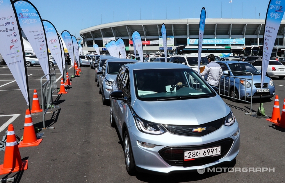 쉐보레(Chevrolet)가 지난 27일, 제주 종합경기장에서 열린 ‘제4회 제주 전기차 에코랠리 대회’에서 볼트EV 특별 행사를 열었다.