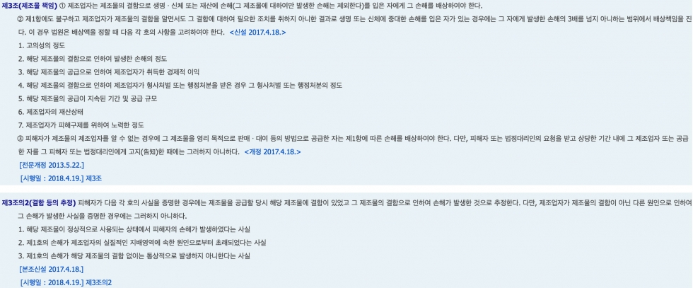 올해 들어서 겨우 소비자 보상과 관련된 징벌적 손해배상 제도가 시작됐다. 지난 4월부터 시행된 제조물책임법 개정안으로, 제조업자가 제품 결함을 알면서도 조처를 하지 않아 생명과 신체에 중대한 손실을 입혔을 경우 손해액의 3배까지 배상하도록 하는 내용이다.