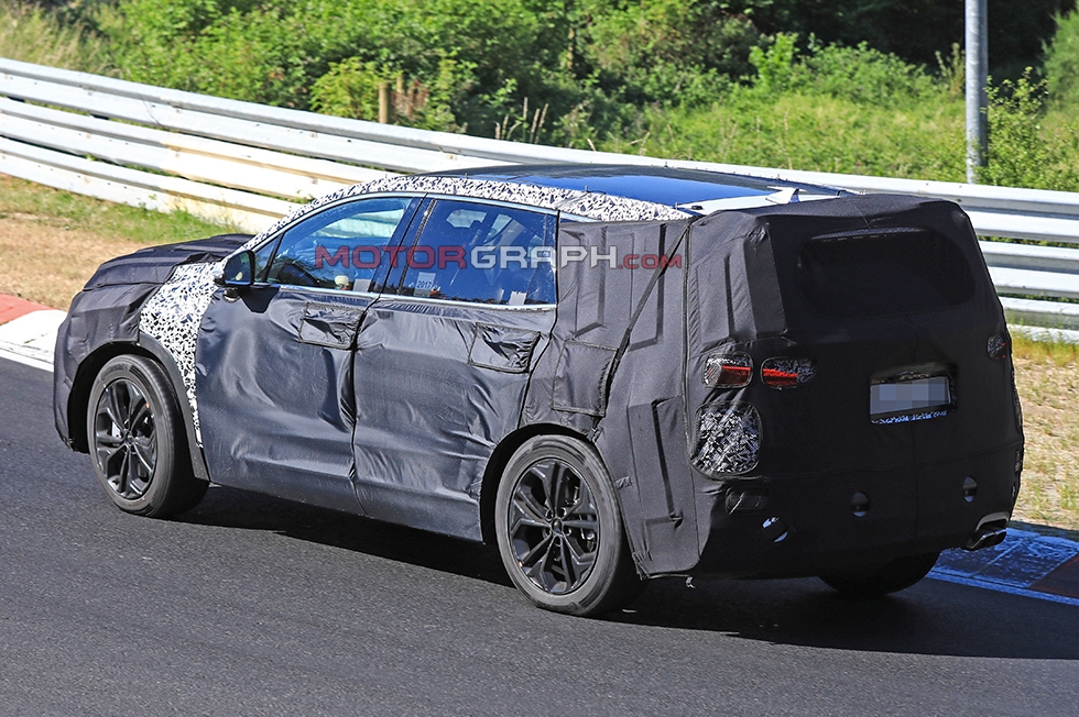 독일 뉘르부르크링 서킷에서 주행 테스트를 하고 있는 현대차 신형 싼타페의 모습이 카메라에 포착됐다. 2012년 나온 3세대 모델 이후 약 6년여 만에 풀체인지되는 4세대 모델로, 국내에는 내년에 출시될 예정이다.