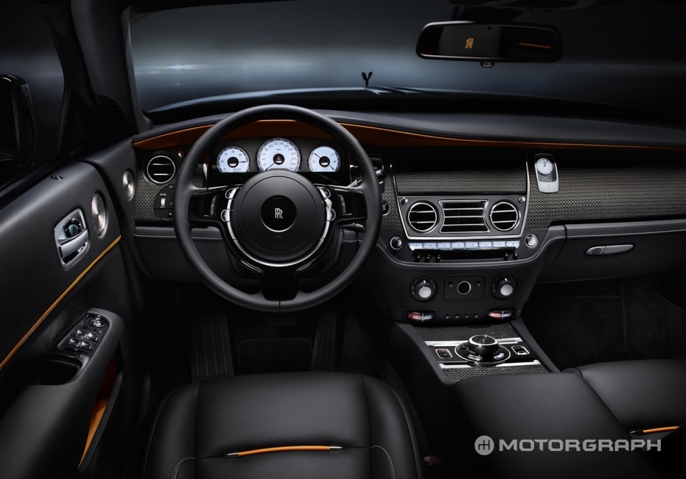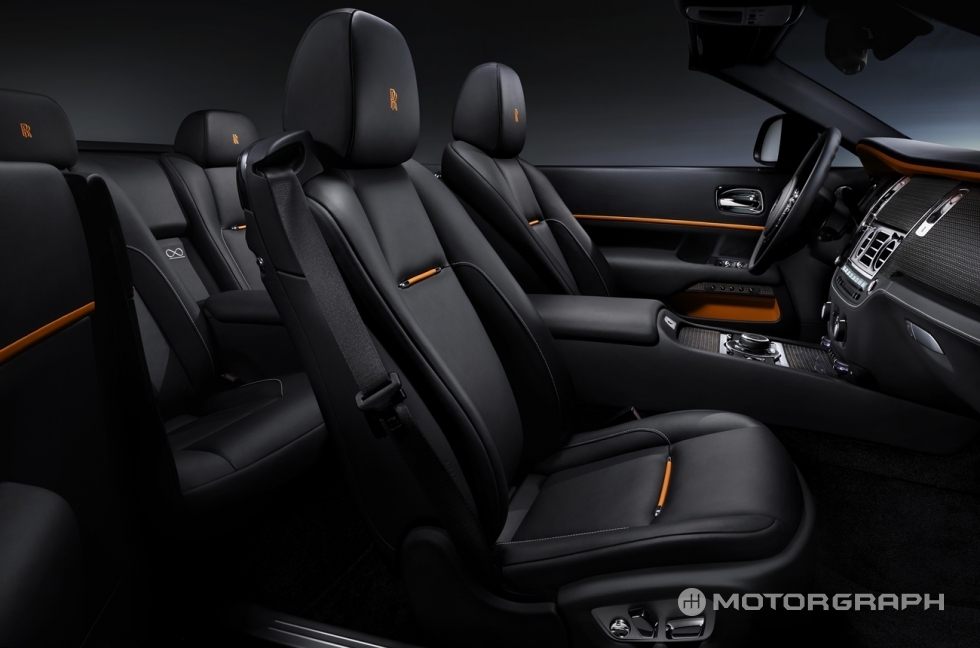 검은색 가죽 시트는 만다린 컬러의 포인트를 지니고 있으며, 롤스로이스의 고객이자 위대한 개척자였던 말콤 캠벨 경을 기념하는 무한대 로고가 뒷좌석 가운데 시트에 수놓아졌다. 또 공조 장치 통풍구는 최첨단의 PVD(Physical Vapour Deposition) 코팅 기법을 통해 아무리 오랜 시간이 지나도 어두운 빛이 흐려지거나 변색되지 않도록 마감됐다.