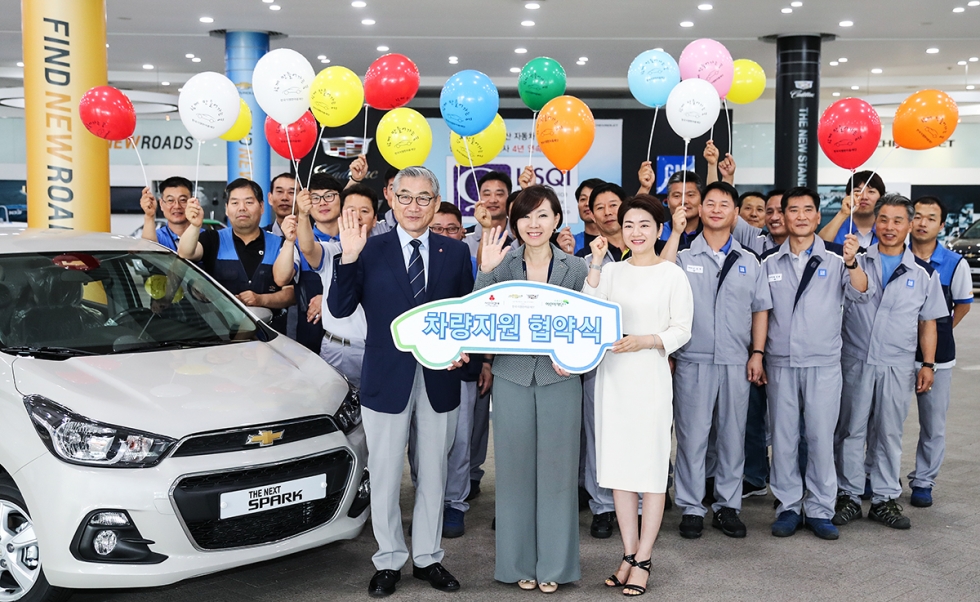 한국GM 한마음재단이 경제 여건이 어려운 가정과 사회복지시설에 쉐보레 스파크를 기증한다.