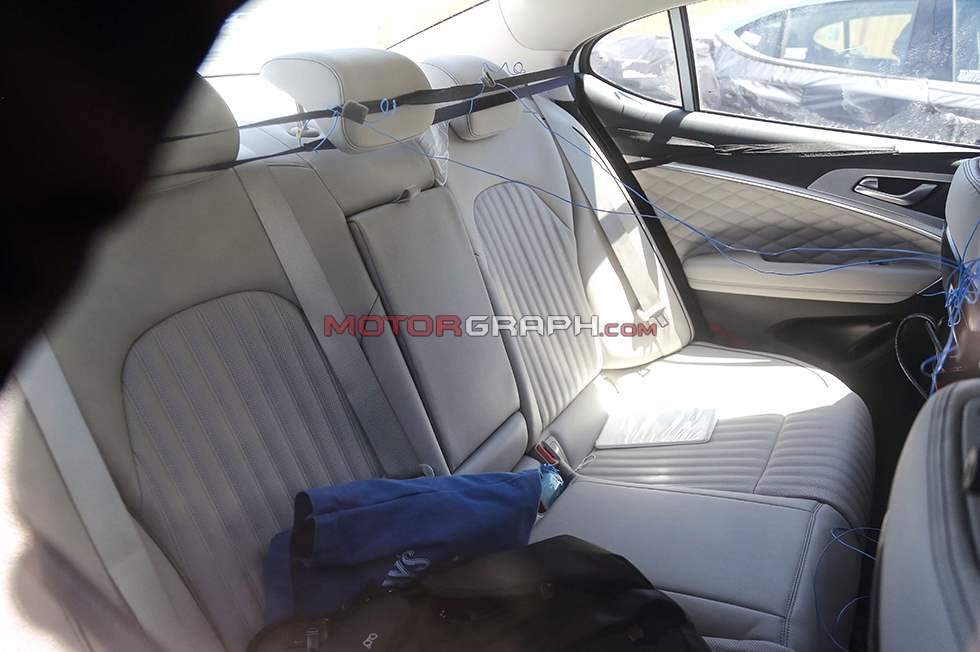 검은 색상의 실내는 패턴의 다각화를 이뤘다. 시트 상단에서 시작된 세로라인이 허리부분에서 퀼팅 무늬로 바뀌었으며 테두리의 흰 선이 돋보인다. 도어패널 디자인은 아이보리 색상과 마찬가지로 퀼팅 무늬가 새겨진 것을 뒷좌석에서 확인할 수 있다.