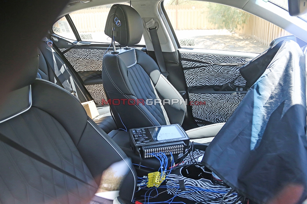 28일(현지시각), 미국 데스밸리에서 시험주행 중인 제네시스 브랜드 최초의 준중형 자동차 G70 프로토타입의 실내가 유출됐다. G70 프로토타입과 BMW 3시리즈의 비교주행 현장에서 기존에 확인된 실내 이외에 두 가지 종류의 실내가 추가로 유출된 것이다.