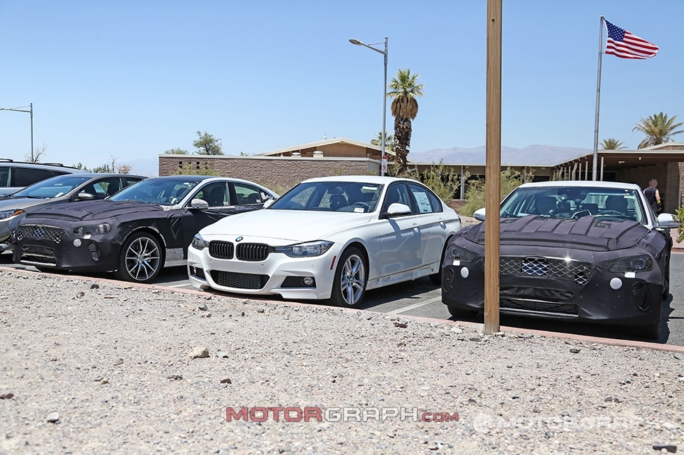 미국 데스밸리에서 BMW 3시리즈와 함께 주행 테스트를 하고 있는 제네시스 G70의 모습이 3일 카메라에 포착됐다. 처음부터 3시리즈를 벤치마킹해 만든 만큼, 비교 테스트를 통해 완성도를 조금이라도 더 높이려는 것으로 보인다.