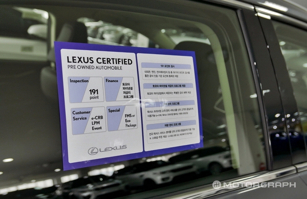 렉서스 브랜드 관계자는 “인증 차량 구매시 신차와 동일한 보증 및 서비스는 물론, 렉서스 프리미엄 멤버십까지 다양한 혜택을 지원한다”며 “더 많은 고객에게 감동을 전하기 위해 새로운 써티파이드 전시장을 준비하고 있다”고 전했다.