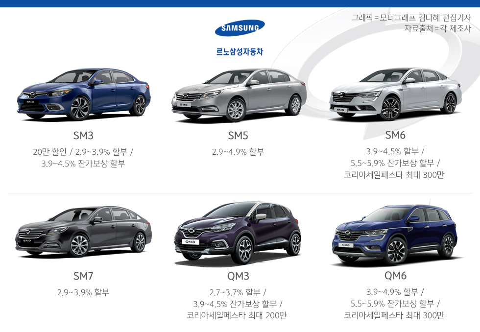 르노삼성은 SM6와 QM6에 최대 300만원, QM3에는 최대 200만원의 할인 혜택을 내걸었다.