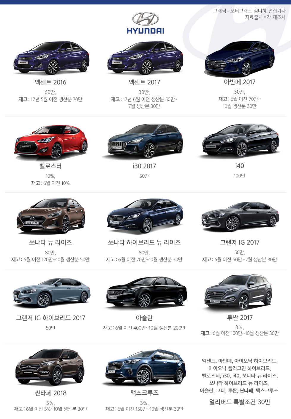 특히 판매가 신통치 않은 아슬란의 경우, 6월 이전 생산분 400만원, 10월 이전 생산분 200만원의 할인 혜택을 제공한다.