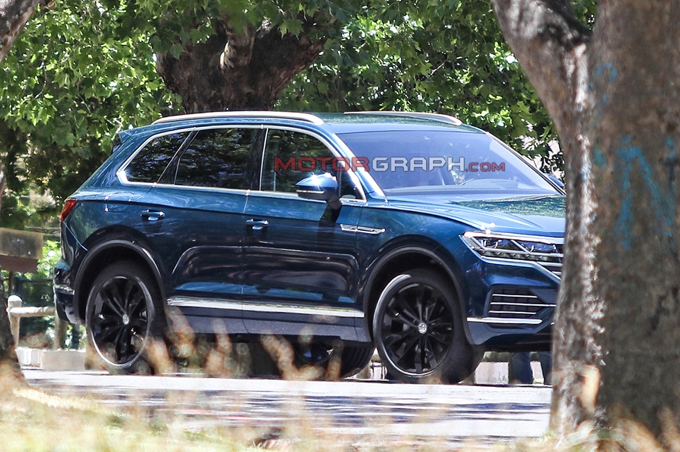 폭스바겐 신형 투아렉이 18일(현지시각) 독일 한 도로에서 포착됐다. 해당 차량은 위장막을 걷고 영상 촬영이 한창이었던 것으로 알려졌다.