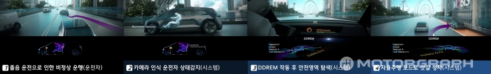 <DDREM>은 Departed Driver Rescue&Exit Maneuver의 줄임말로 사전적으로는 운전을 할 수 없는 상태의 운전자를 구출해낸다는 뜻이다. 기술적으로는 졸음 등으로 차량이 지그재그로 움직인다거나 운전자가 전방 주시를 하지 않고 눈을 자주 감을 경우 센서가 이를 감지해 차량을 안전한 곳으로 인도하는 시스템을 의미한다.