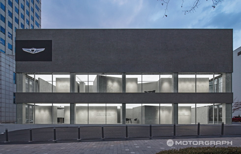 제네시스 관계자는 "‘제네시스 강남’은 겉으로 드러나는 화려함이 아닌 내면의 품격과 만족감을 추구하는 새로운 명품의 가치를 인테리어에 반영했다"면서 "빈티지 콘크리트 마감재와 별도의 가공 없이 철 재료 본연의 재질을 간직한 열연강판 등 기존 고급차 전시장과는 차별화된 소재와 기법을 적용했다"고 설명했다.