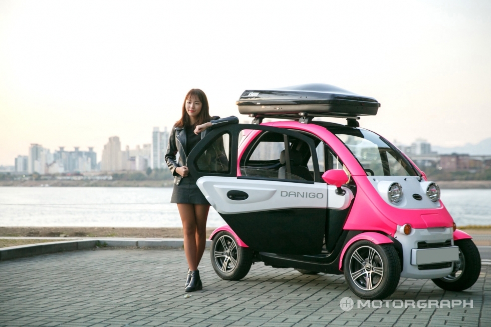 한편, 초소형 전기차 ‘다니고’는 전장 2320mm, 전폭 1200mm의 크기로 2인승으로 제작됐다. 중량은 배터리(LG 화학 Li-Ion, 7.25kwh)포함 430kg이다. 최고속도는 80km/h, 완충 시 최대 100km까지 주행할 수 있다. 특히 220V 가정용 콘센트 또는 완속 충전기로도 충전할 수 있도록 해 편의성을 높였다. 여기에 초소형 전기차 최초로 후방카메라를 장착했으며 옵션으로 차량 루프랙을 설치할 수 있다. 또 에어컨, 히터, 오디오, 헤드라이트 등 차량의 필수 요소들을 기본 장착해 주행의 안전과 편의를 강화했다. 또 고객의 사용 환경과 용도에 따라 루프캐리어도 선택이 가능하다.