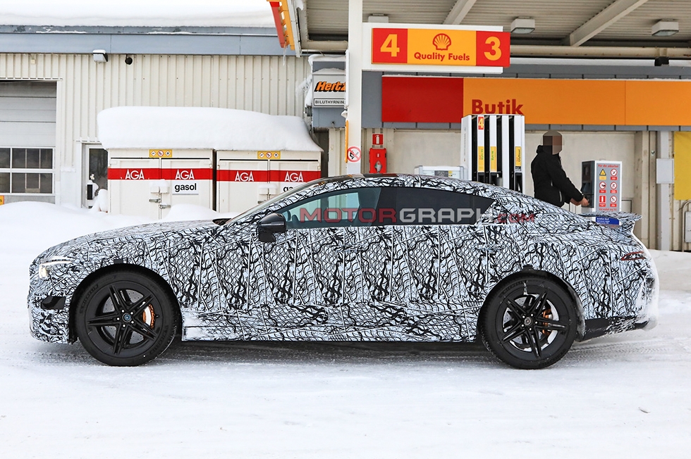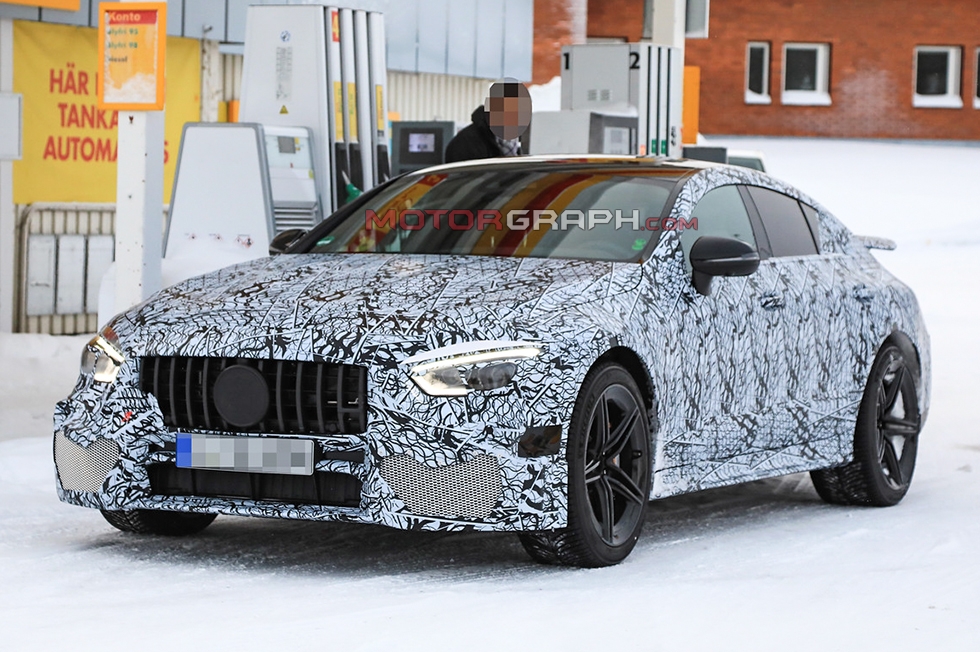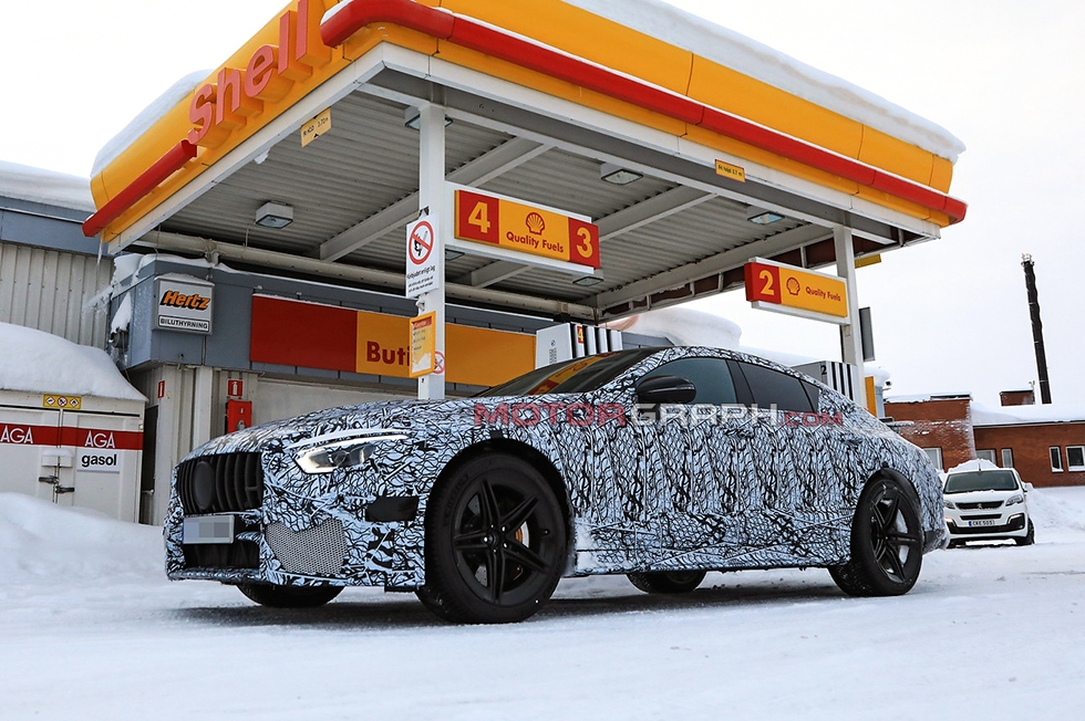 올해 출시 예정인 고성능 4도어 스포츠 세단 AMG GT4 S가 23일(현지시각) 스웨덴에서 포착됐다. E클래스 플랫폼을 기반으로 제작된 이 슈퍼 세단은 포르쉐 파나메라를 정조준한다.