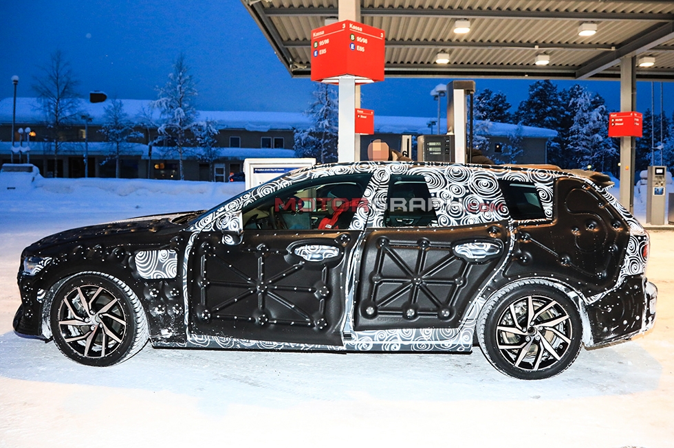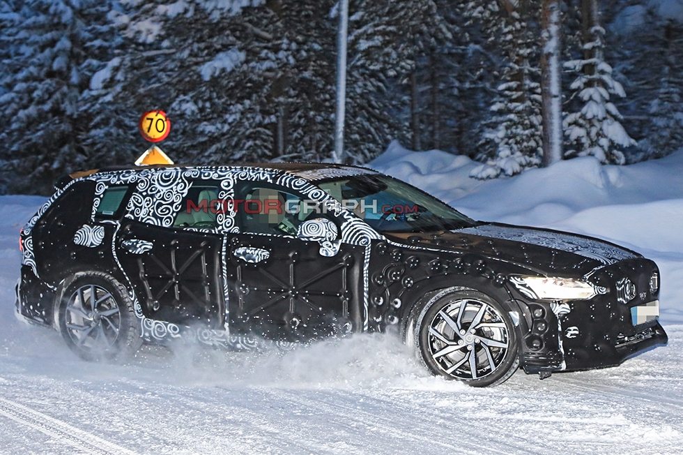 볼보 신형 V60 시험주행차가 25일(현지시각) 스웨덴에서 포착됐다. 외관은 XC90 디자인 아이덴티티를 대폭 적용해 XC60 혹은 V90과 매우 흡사할 전망이다. 낮고 넓은 차체와 '토르의 망치'로 불리는 헤드램프 디자인이 눈길을 잡아끈다.