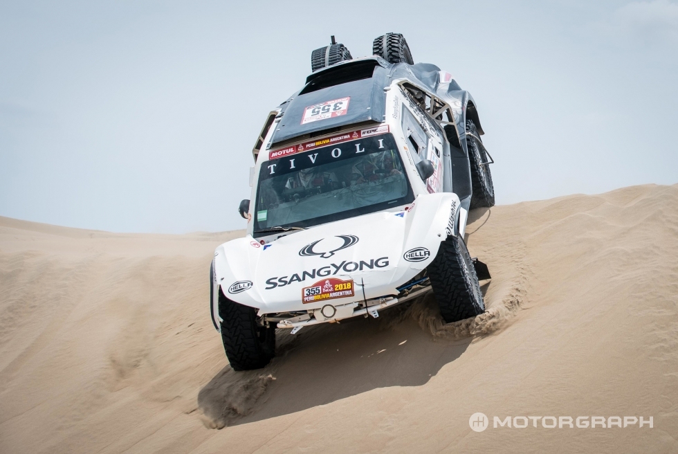 경기에서도 어려움은 많았습니다. 다카르 랠리는 드라이버의 실력이 크게 반영되는 경기고, 그 실력은 곧 경험이었죠. 티볼리 DKR의 운전대를 잡은 오스카 푸에르테스(Oscar Fuertes)는 유명한 드라이버도 아닐 뿐더러, 올해 처음 다카르 랠리에 참가했습니다. 그는 첫 스테이지부터 사구(砂丘)에 빠지며, 신고식을 톡톡히 치뤘습니다. 그 다음 스테이지에서도 모래밭에 빠졌죠. 하지만 서서히 남미의 거친 오프로드에 적응한 그는, 안정적인 경기 운영으로 완주에 성공했습니다.