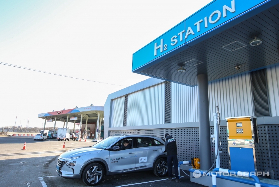 여주 휴게소에는 현대차가 임시로 설치한 '수소 스테이션'이 자리잡고 있었다. 한곳의 설치 비용이 약 50억원 정도 한다고 알려져 있다. 수소 1kg 충전하는데 걸리는 시간은 채 1분도 걸리지 않았다. 6kg만 넣으면 고속도로에서 500km를 달릴 수 있었다. 연비 시험 패턴으로 주행하면 609km를 간다. 문제는 수소 가격이 아직 책정되지 않았다는 점인데, 1kg당 1만원 정도에 책정된다면 가솔린차보다 두배 정도의 경제성을 기대할 수 있다고 한다. 하지만 차량 가격 등 많은 부분이 생략된 경제성 측정이다.