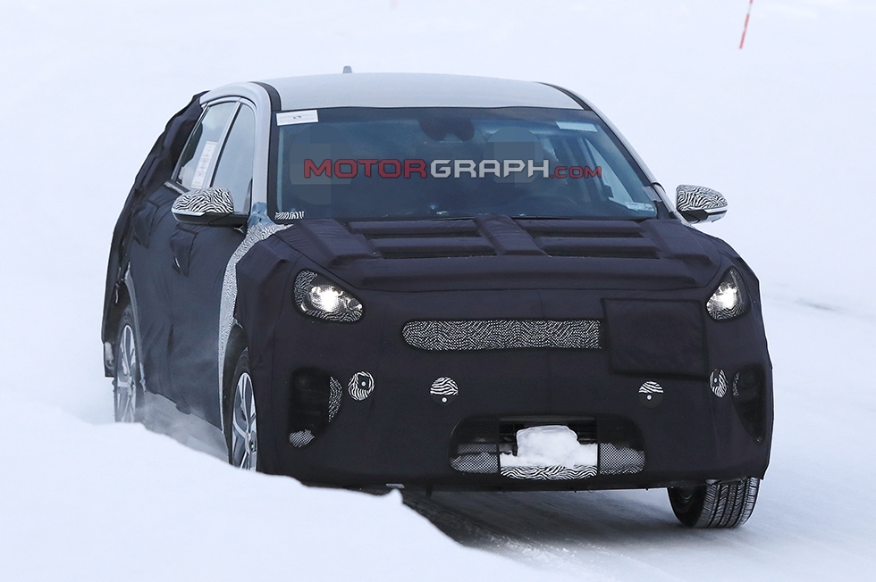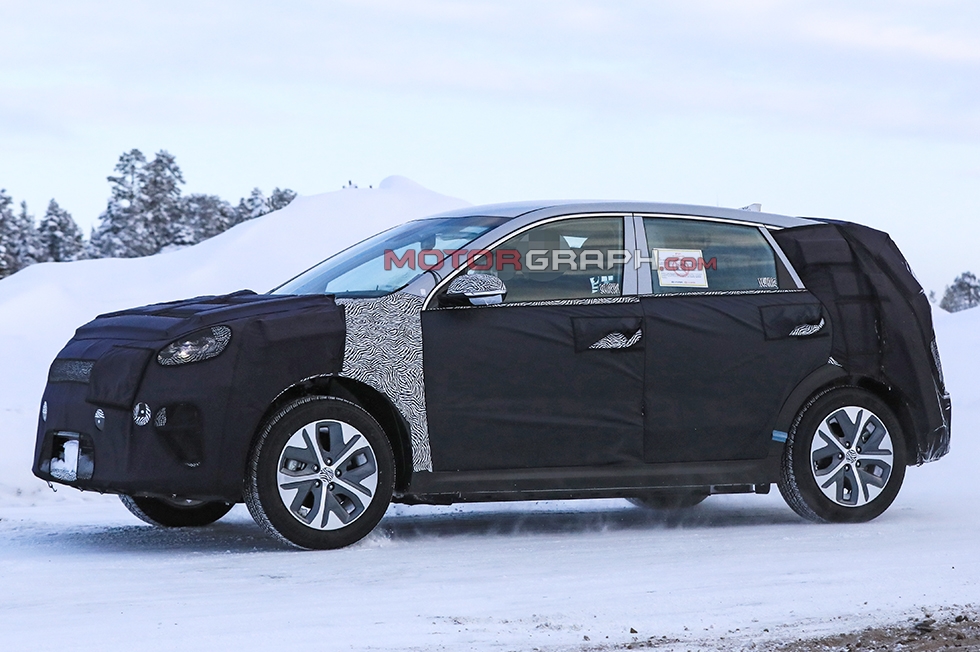 그릴 부위 우측, 전기 플러그를 꽂는 부위는 따로 위장막을 떼어 낼 수 있도록 만들어서 콘센트 커버 형태를 감추려 한 것으로 보이지만, 오히려 이 때문에 전기차라는 것이 명확히 보인다. 전기차인 이상 위장막을 만들 때부터 그릴 부위를 매쉬로 처리할 이유가 없는데, 아마도 기존 니로의 위장막을 재사용 하기 때문인 것으로 보인다.
