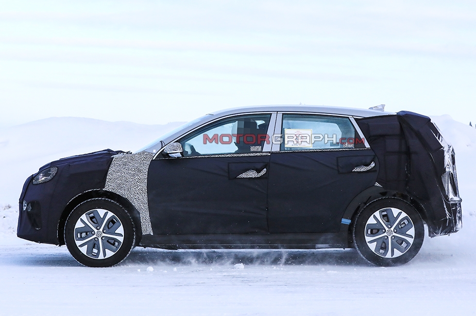 신형 현대차 아반떼EV와 함께 도로 주행 테스트 중인 이 차는 내달 6일 제네바모터쇼를 통해 처음 공개 된 후 사전 계약을 받고 5월 국내 출시 될 예정이다.