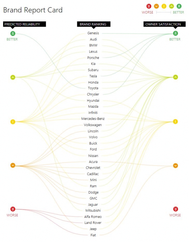제네시스 다음으로는 아우디(80점), BMW(79점), 렉서스(77점), 포르쉐(77점)가 이름을 올렸고, 이어 기아차가 76점으로 6위를 기록했다. 7~10위는 스바루(76점), 테슬라(74점), 혼다(73점), 토요타(72점) 등이 차지했다.