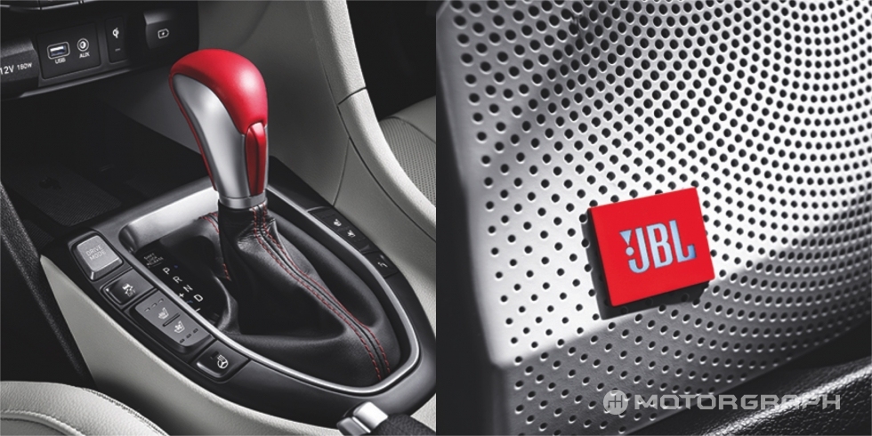현대차는 JBL 익스트림 사운드 에디션 트림만의 차별화된 가치를 제공하기 위해 전용 LED 엠블럼을 좌우측 도어 우퍼에 달고 강렬한 레드 컬러의 기어노브를 적용했다.