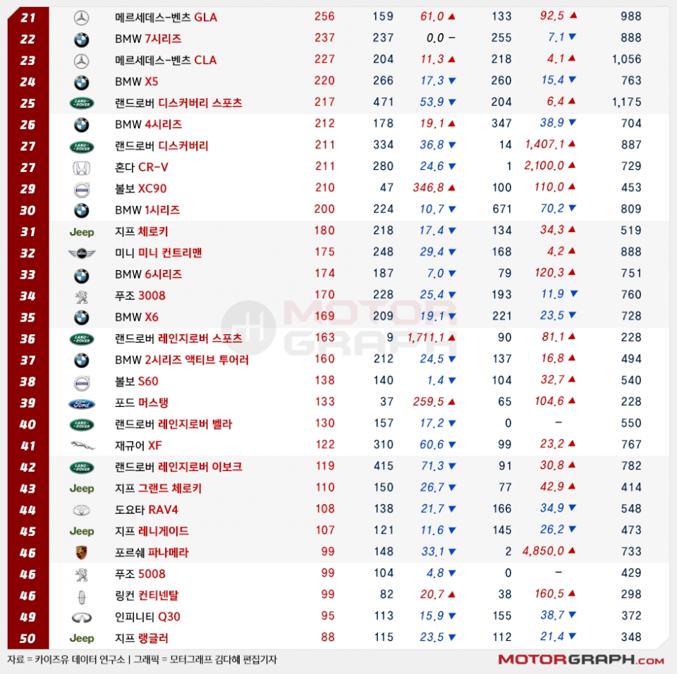 이외 볼보(863대)가 지난달 깜짝 실적을 달성했다. 3월 대비 판매량이 67.6%나 급증했다. 볼보는 XC60(325대)과 XC90(210대)에 대한 공급 문제가 일부 해결됨에 따라 판매량이 급격히 늘어났다.