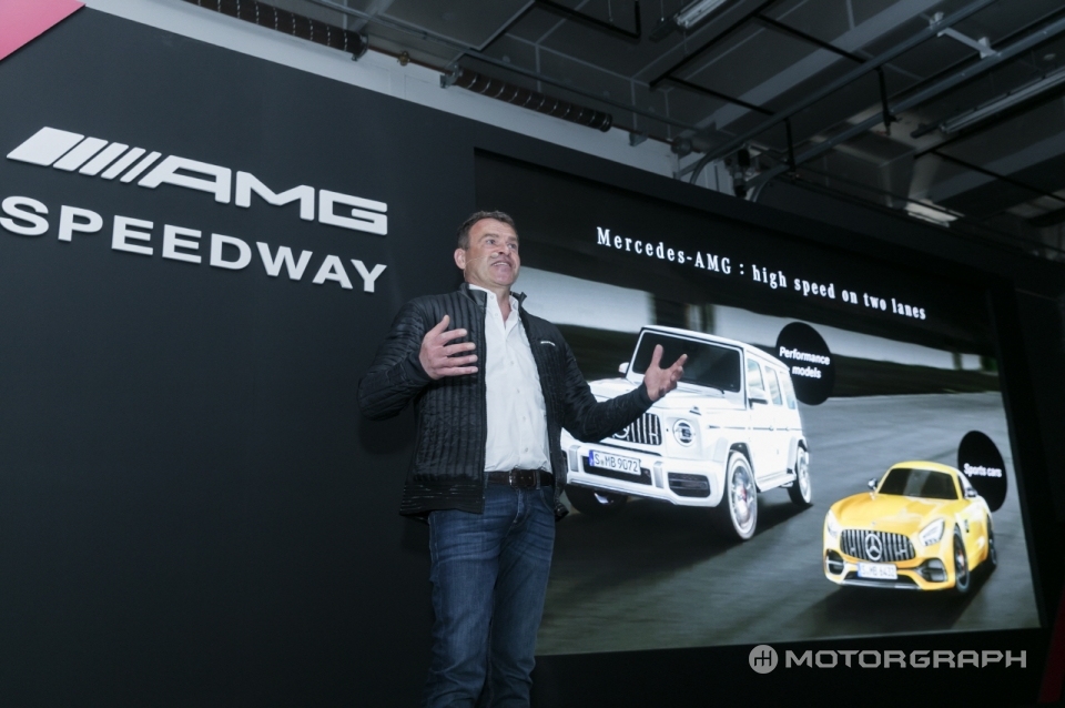 AMG 스피드웨이 행사를 위해 메르세데스-AMG 토비아스 뫼어스(Tobias Moers) 회장과 임직원들이 한국을 찾았습니다. 그리고 좀처럼 독일을 벗어나는 일이 없다는 메르세데스-AMG의 하이퍼카 ‘프로젝트 원’도 동행했습니다. 메르세데스-AMG의 핵심들이 전부 한국에 온 것이죠.