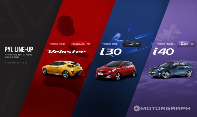 | ▲ 벨로스터, i30, i40 등 PYL 라인업 | ||