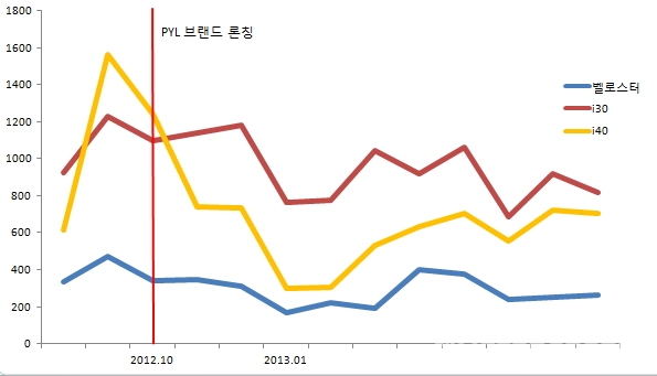 | ▲ PYL 브랜드 출범 후 각 모델들의 판매량 변화 | ||