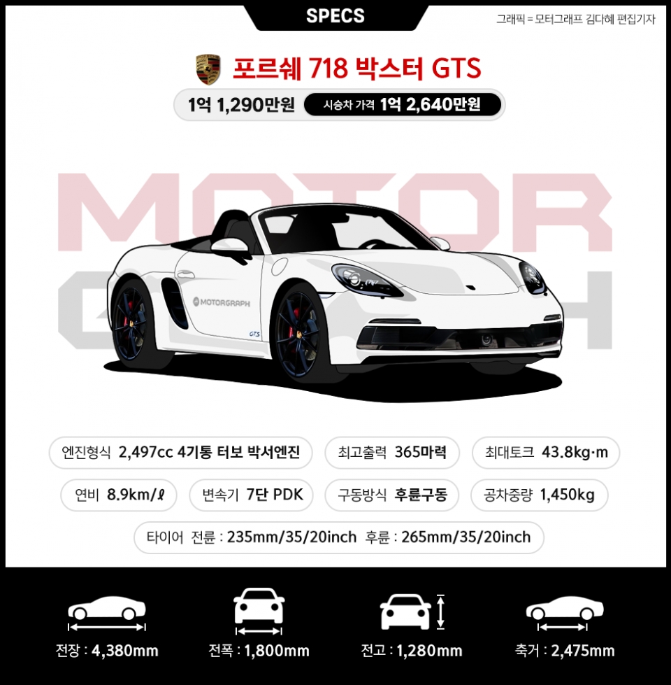 718 박스터는 생동감이 넘친다. 가볍고 경쾌하다. 누구나 쉽고 재밌게 차를 몰 수 있다. 한마디로 718 박스터는 즐거운 차다. 그런데 718 박스터에 GTS가 더해지면, 사뭇 분위기가 달라진다. 머리카락이 쭈뼛 설 정도로 공포감을 불러일으키기도 하고, GTS의 거친 소리는 심장을 옥죈다.