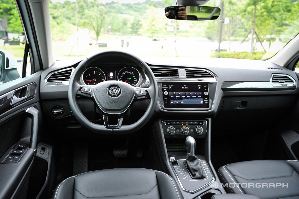 폭스바겐은 안과 밖의 디자인을 따로 떼어놓지 않는다. 어떤 것이 선행됐는지 알수 없을 정도로 동질감을 갖는다. 수평적인 레이아웃을 통해 더 넓고 시원스럽게 보이는 구조는 폭스바겐의 전매특허다. 거기에 신형 티구안은 전에 없었던 세련됨까지 보탰다. 플라스틱 소재에 대한 가공도 한층 나아졌고, 마감도 깔끔하다. 다만, 신형 티구안의 큰 자랑이었던 12.3인치 액티브 인포 디스플레이는 최상위 트림에만 탑재됐다. 시승차는 4450만원의 프레스티지 트림임에도 예전과 별반 차이가 없는 계기반이 적용됐다.