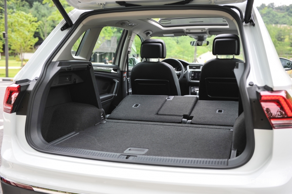 큰 차체는 고스란히 뒷좌석과 트렁크 공간의 확대로 이어졌다. 이젠 해치백이나 소형 왜건과는 확연한 차이가 생겼다. 특히 뒷좌석은 앞뒤로 움직일 수 있고, 등받이 각도에 대한 자유도도 높다. 고급스럽다고 크게 내세울 부분은 없지만, 충분히 깔끔하다. 티구안의 특징 중 하나인, 뒷좌석 승객을 위한 테이블도 여전했다. 이전 세대보다 훨씬 견고해졌고, 사용법도 개선됐다.