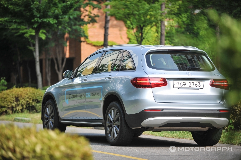 전기모터와 배터리를 통해 GLC350e 4MATIC는 충분한 이득을 얻고 있다. 다만 그것을 쉽게 체감할 순 없다. 그만큼 모든 부분에 있어서 최적화가 잘됐다. 전기모터의 소음도 거의 느낄 수 없고, 에너지회생제동시스템이 탑재된 브레이크의 이질감도 거의 없다. 다만 순각적으로 전기모터가 개입할 때마다 목이 뒤로 젖혀진다. 증가하는 엔진회전수보다 훨씬 빠르게 가속된다. 정지 상태에서 시속 100km까지 도달하는 시간은 5.9초다. 또 고속으로 달리는 와중에서도 전기모터의 도움이 느껴진다.